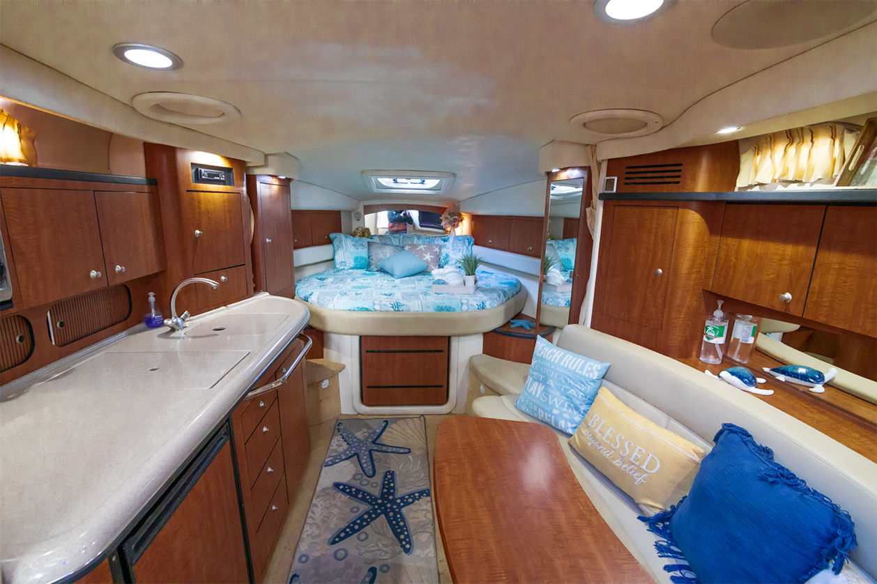 •   Experience the thrill of the ocean aboard our 37ft Sea Ray, a beacon of versatility and performance. Perfect for intimate gatherings or solo adventures, it offers a unique way to explore the sea with grace.